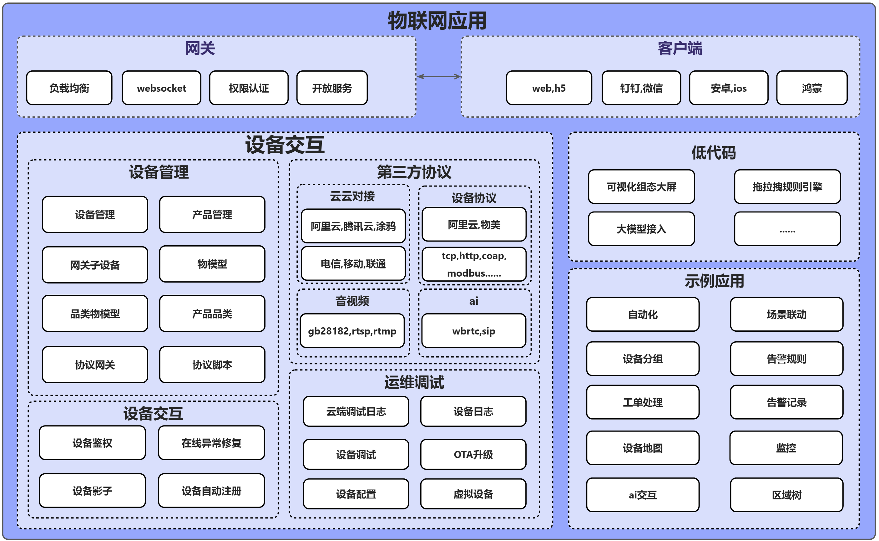 灵活的OTA升级,场景联动,告警管理,规则引擎,组态,物模型(通用物模型,产品品类物模型,产品物模型,设备物模型)...