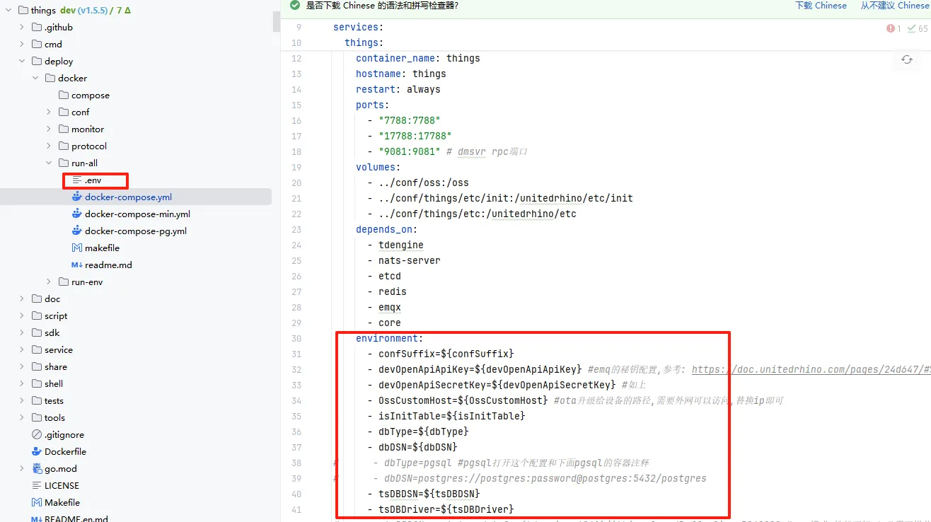 在docker.compose.yarm中使用环境示例