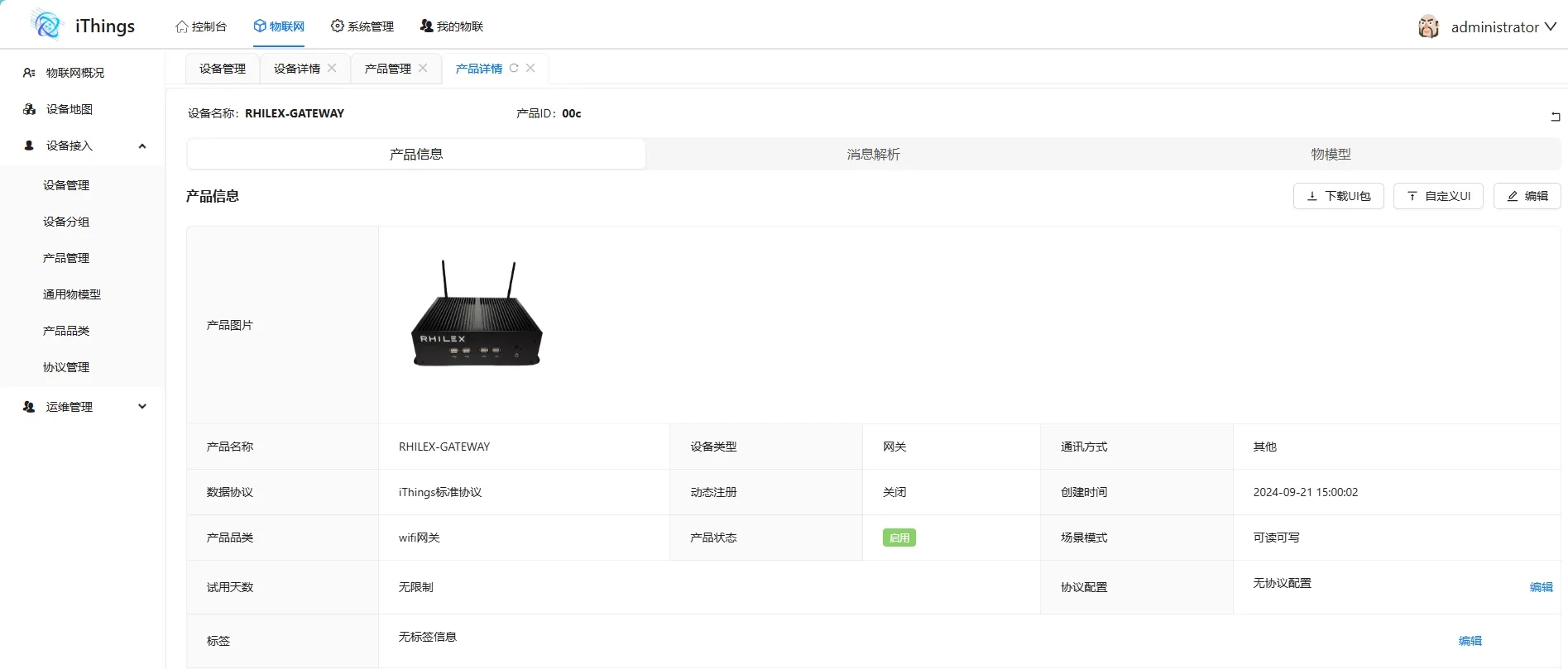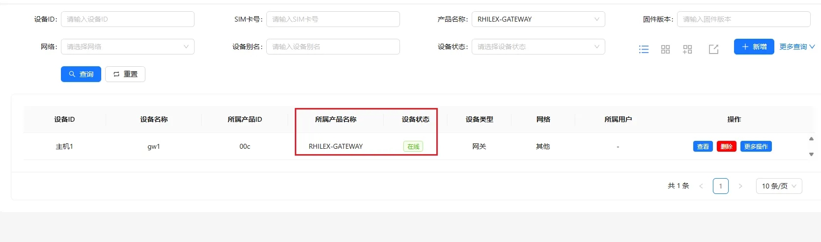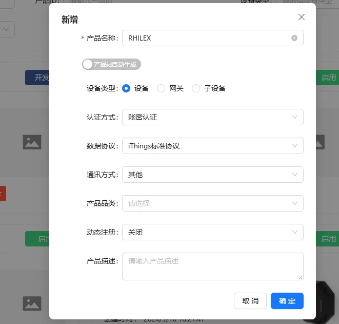 接下来在RHILEX端新建联犀接入。首先在联犀平台找到对应的产品ID、设备名、秘钥,然后填入资源配置参数里面即可。