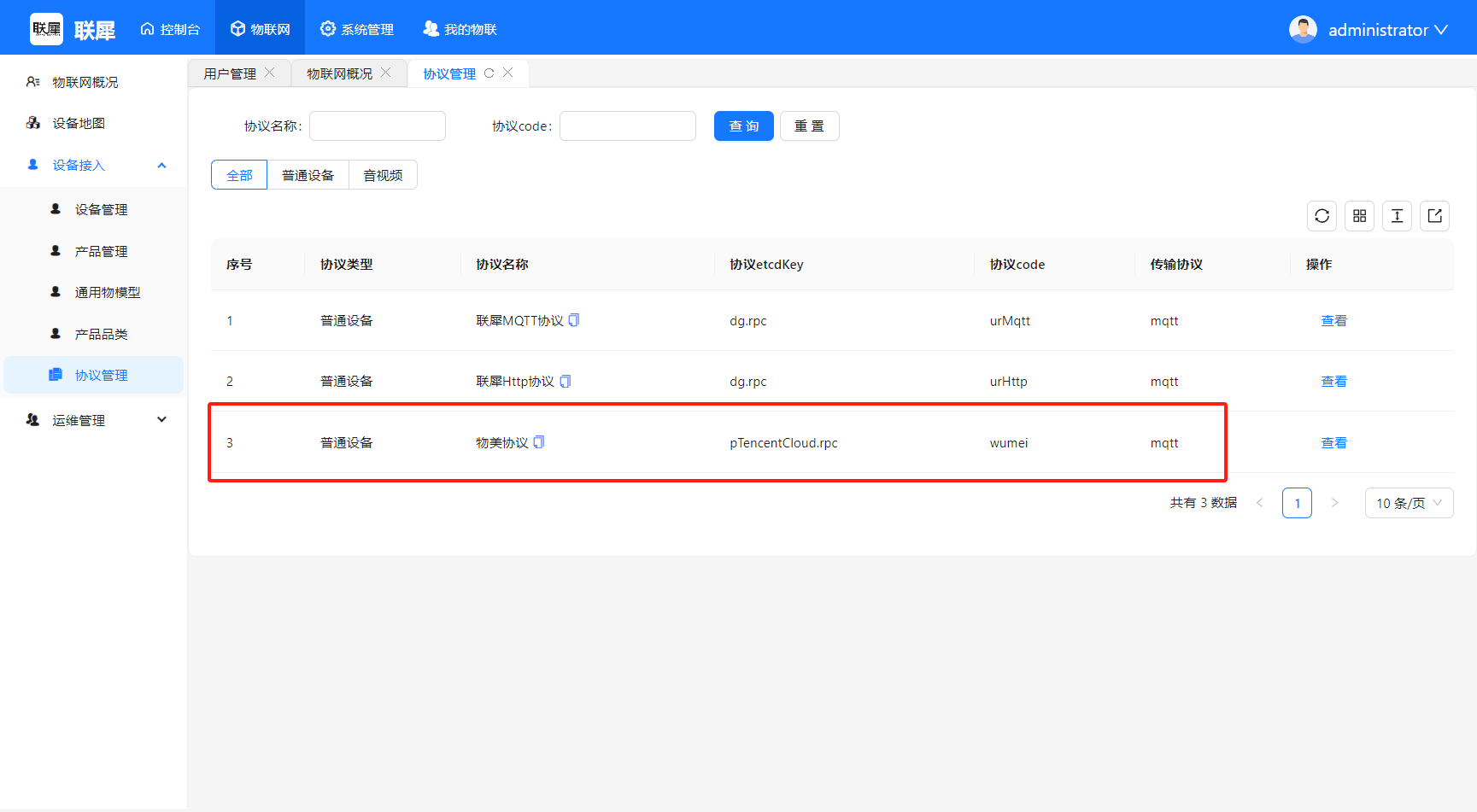 联犀支持不同的设备接入,无论是云云对接的还是各种设备协议,这里以物美协议为示例来说明如何安装我们的协议组件.
