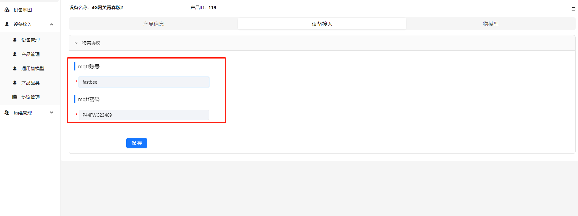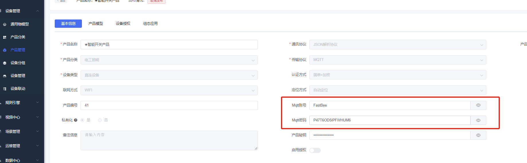 2. 并将物美上的mqtt账号和mqtt密码复制出来