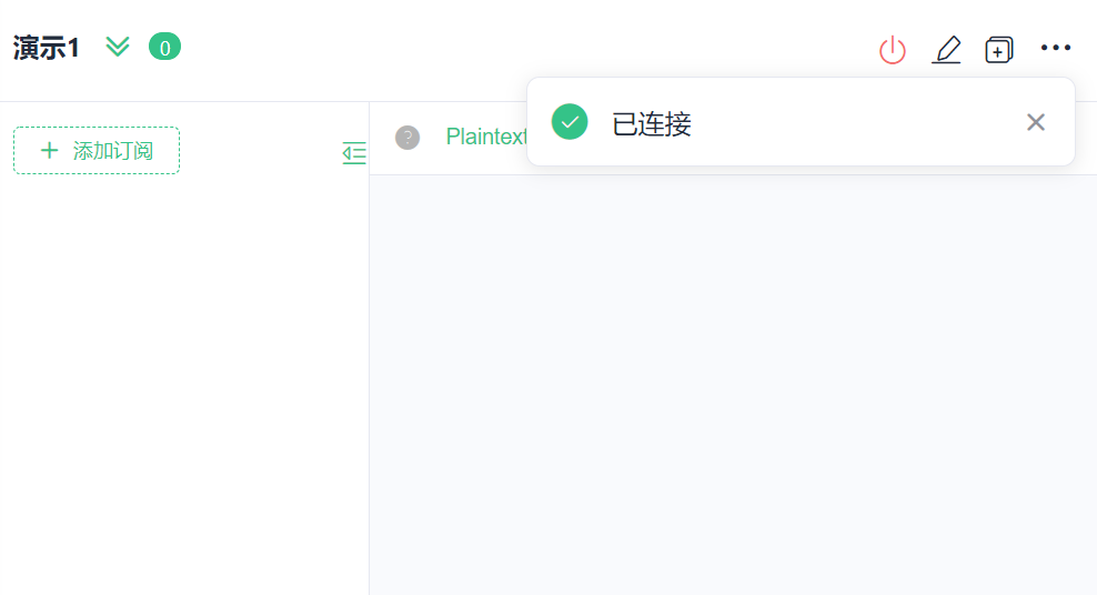 - 填写完后点击连接,显示已连接则连接成功,即可进行发布和订阅等操作。