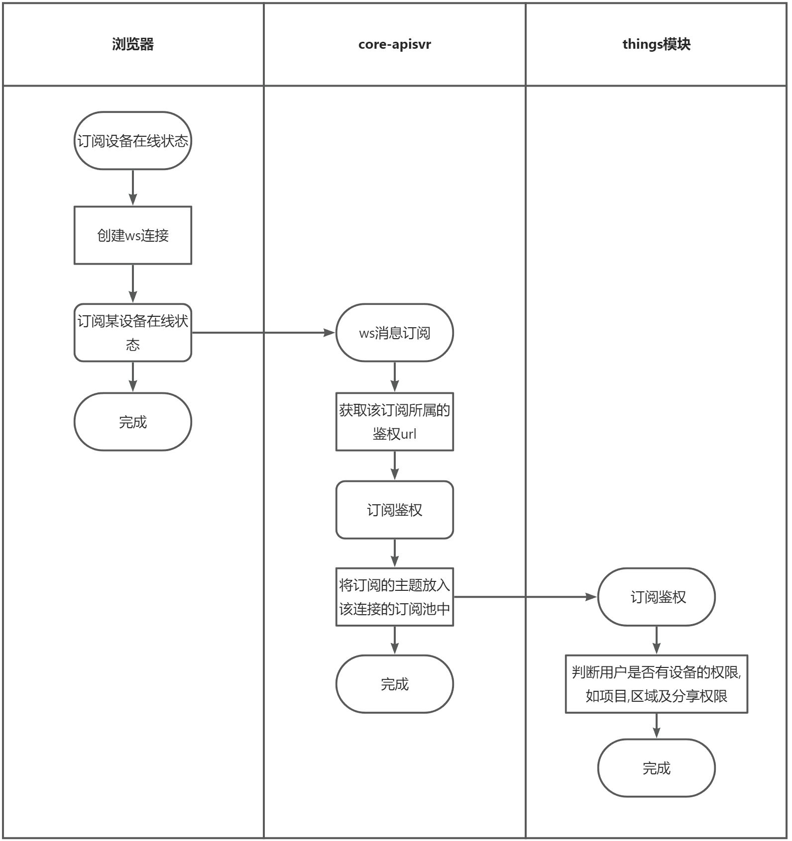 同时当用户订阅一个服务的消息的时候我们需要进行鉴权, 这时候core 是不知道他能不能订阅的,如设备的状态推送,这种消息只有项目内及设备的分享者才能有权限进行订阅.