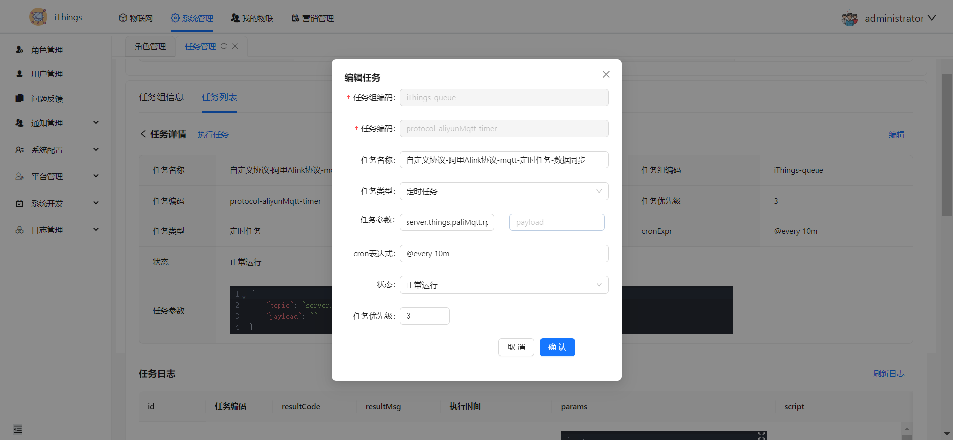 任务创建可以参考 things/service/dmsvr/internal/startup/init.go:381