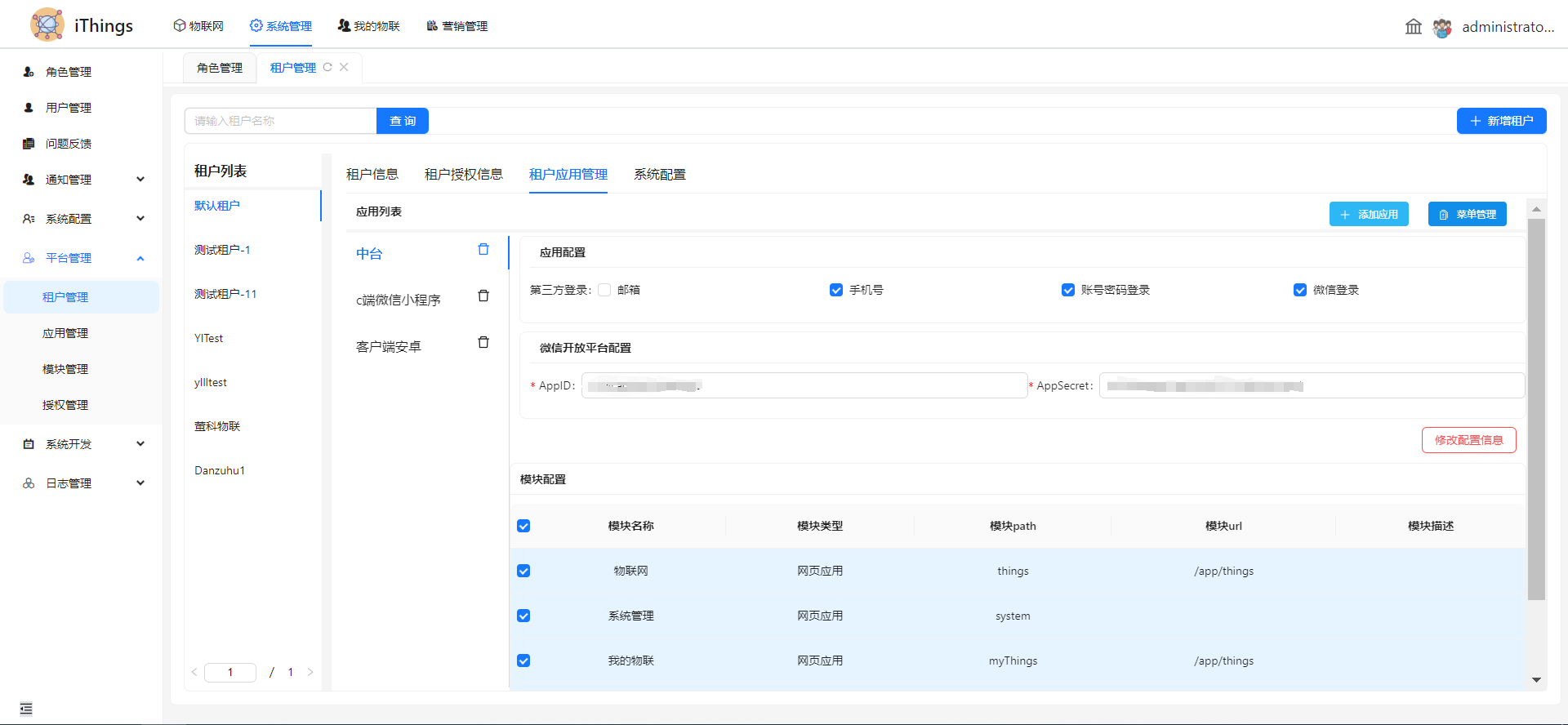 授权了功能之后还需要授权应用给租户,租户才能访问及正常使用对应的应用.