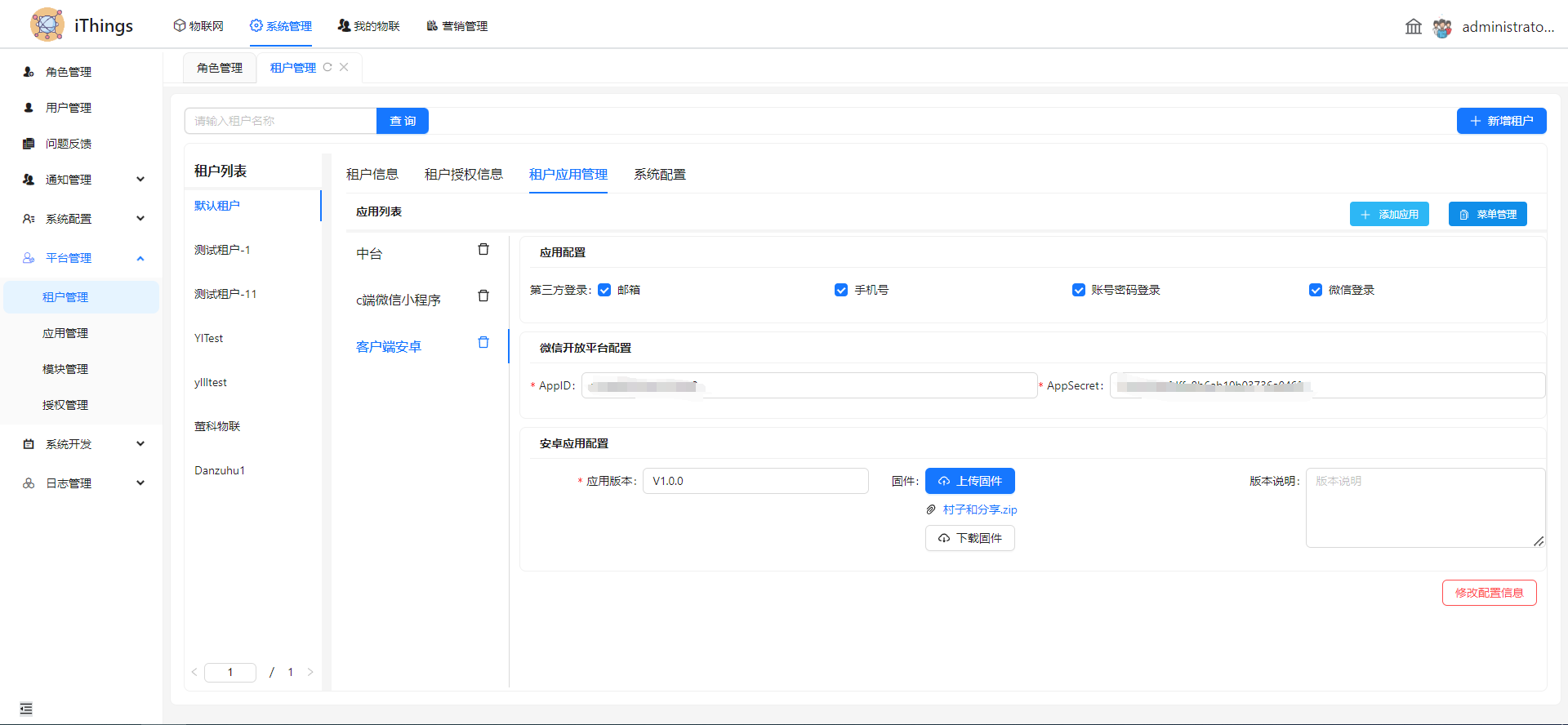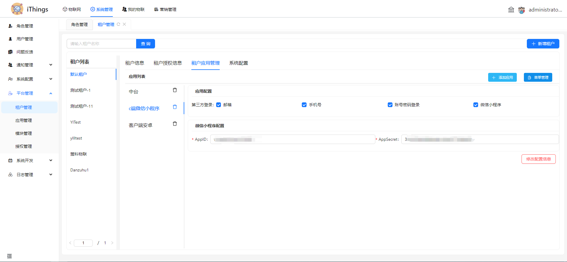 一些租户定制的系统配置需要在这里配置,如注册自动创建项目和区域适合c端智能家居类场景,是否运行管理员注销账号则是在b端场景不能因为管理员注销了账号而删除项目